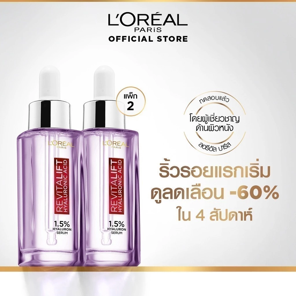 เซรั่มนวัตกรรมไฮยาลูรอนิค แอซิดที่มีความเข้มสูงสุด* ช่วยลดเลือนริ้วรอยมากกว่า 60% ใน 4 สัปดาห์ ผิวดูอิ่มเด้ง อ่อนเยาว์ ทรงพลังด้วยโมเลกุล 2 ชนิด: 1. MACRO; โมเลกุลใหญ่ ช่วยให้ผิวชุ่มชื้นขึ้น แก้ไขความแห้งกร้านภายนอก พร้อมปกป้องผิวให้ผิวแลดูเรียบเนียน 2. MICRO; โมเลกุลเล็กกว่า 50 เท่า ซึมซาบสู่ผิวได้อย่างล้ำลึก เพื่อผิวดูเด้ง อิ่มฟูจากภายใน เนื้อเซรั่มบางเบา ซึมไว สบายผิว