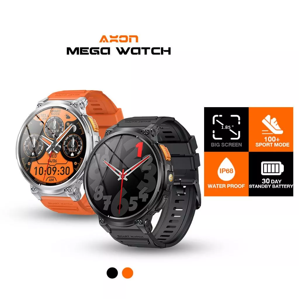 AXON Mega Smart Watch เป็นนาฬิกาเพื่อสุขภาพที่มาพร้อมกับจอใหญ่ขนาด 1.85 นิ้ว แบบ IPS ซึ่งให้ภาพคมชัดและสามารถใช้งานได้สะดวก ฟีเจอร์เด่นของนาฬิกาคือการสามารถโทรได้ผ่านบลูทูธ, ทำให้การสื่อสารสะดวกยิ่งขึ้น โดยไม่ต้องหยิบโทรศัพท์ออกมา นอกจากนี้ยังมีฟังก์ชันการวัดชีพจร (Heart Rate) และการวัดระดับออกซิเจนในเลือด (SpO2) ช่วยให้ผู้ใช้สามารถติดตามสุขภาพได้ตลอดเวลา