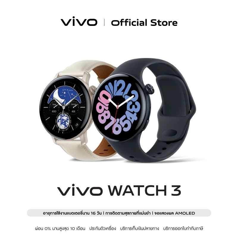 - Vivo Watch 3 ทนน้ำลึก 50 เมตร แบตเตอรี่ที่ใช้งานได้นานสูงสุด 16 วัน ตัวช่วยด้านสุขภาพระดับโปร