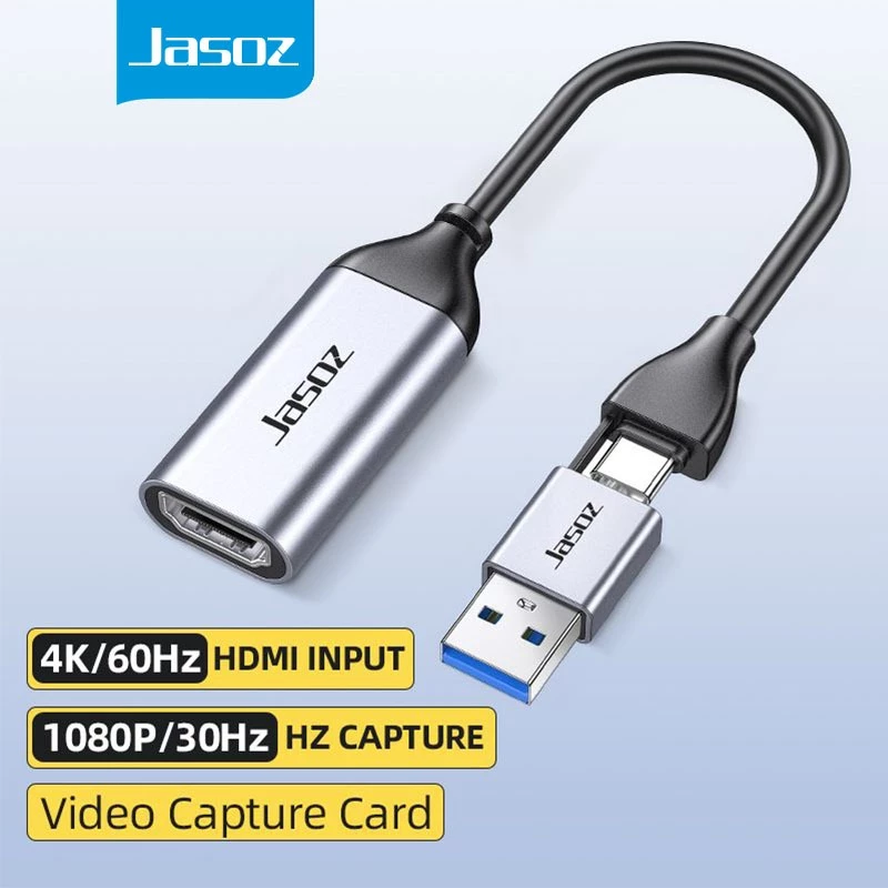 - Jasoz การ์ดจับภาพวิดีโอ Video Capture Card USB to Type-C+HDMI 4K Video