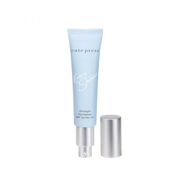 CUTE PRESS ครีมรองพื้น EVORY SNOW ULTRALIGHT FOUNDATION เป็นรองพื้นที่มีเนื้อสัมผัสเบาและบางใส เหมาะสำหรับการใช้ในชีวิตประจำวัน รองพื้นนี้มี SPF 30 PA+++ ช่วยปกป้องผิวจากแสงแดดและรังสี UV พร้อมทั้งให้ความชุ่มชื้นและดูแลผิวในระหว่างวัน