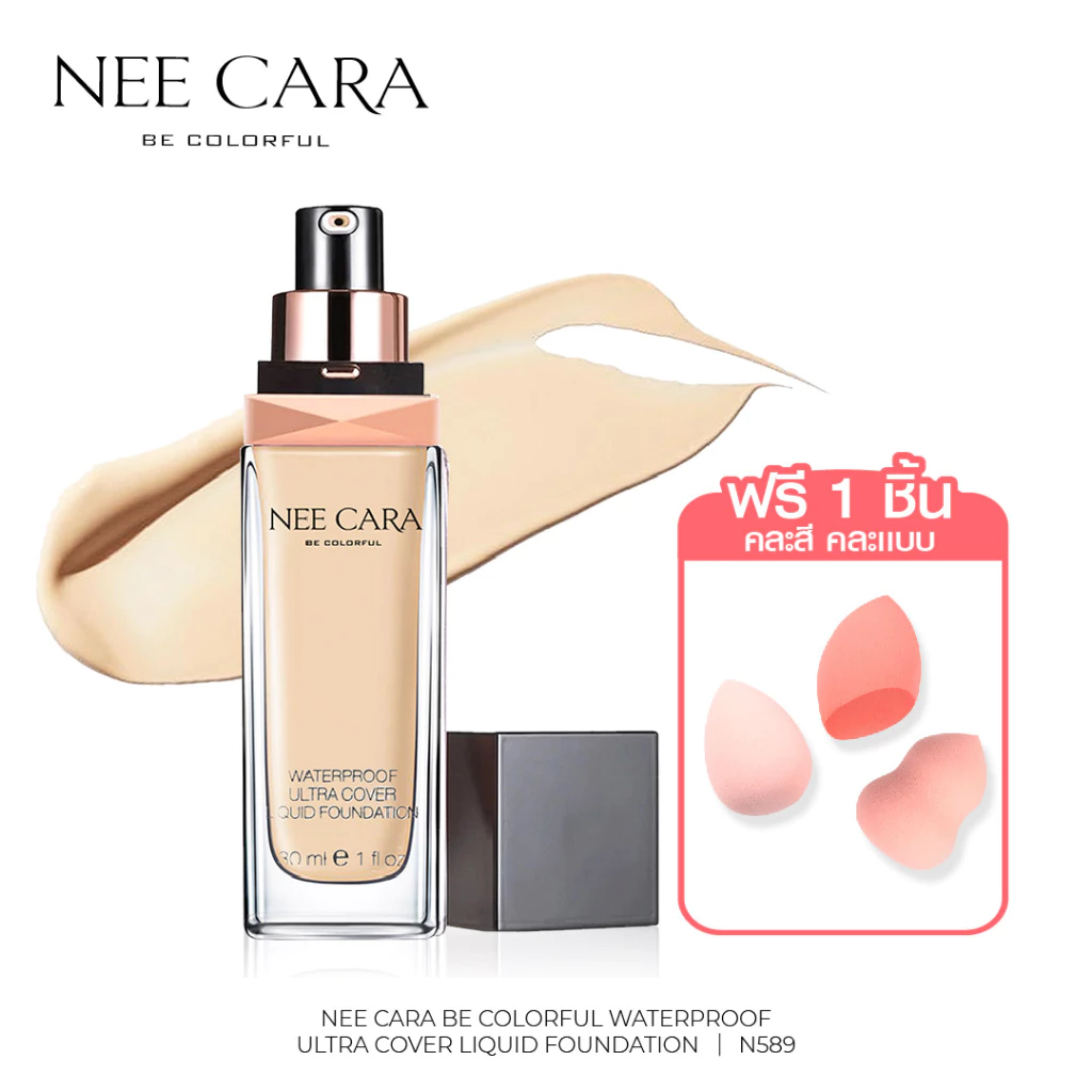 NEE CARA นีคาร่า รองพื้น N589 WATERPROOF ULTRA COVER LIQUID FOUNDATION เป็นรองพื้นที่มีคุณสมบัติกันน้ำและติดทนนาน เหมาะสำหรับผู้ที่ต้องการการปกปิดที่สมบูรณ์แบบและยาวนาน รองพื้นนี้มีเนื้อสัมผัสเบา ช่วยให้การเกลี่ยง่ายและไม่รู้สึกหนักหน้า