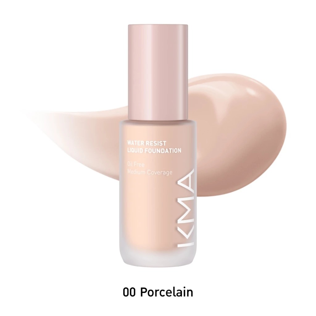 KMA WATER RESIST LIQUID FOUNDATION เคเอ็มเอ วอเตอร์ รีซิสต์ ลิควิด ฟาวเดชั่น รองพื้นที่คิดค้น เพื่อตอบโจทย์ผิวคนไทยโดยเฉพาะ ล็อคผิวสวย คุมมัน 12 ชม.จะ everyday look แบบธรรมชาติ หรือ หน้าเป๊ะในวันพิเศษก็เอาอยู่ กันน้ำ กันเหงื่อ ไม่เป็นคราบระหว่างวัน