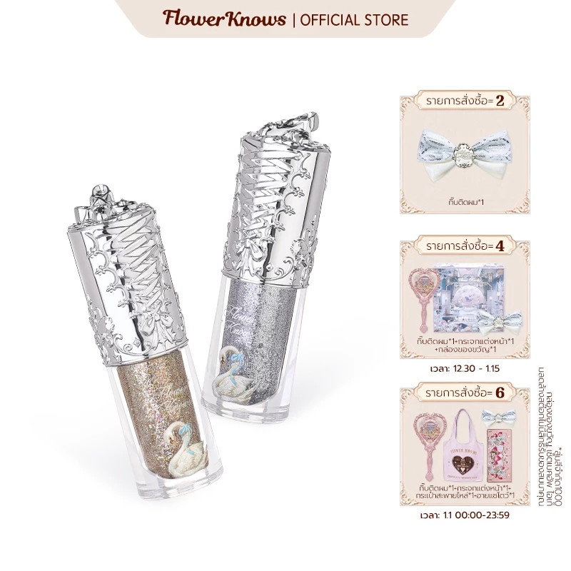 - Flower Knows Swan Ballet Series อายแชโดว์ เนื้อลิขวิด กลิตเตอร์ 5 สี