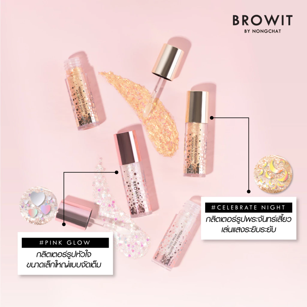 อายแชโดว์กลิตเตอร์จากแบรนด์ Browit ที่ออกแบบมาในคอลเลกชันพิเศษสำหรับเทศกาลวันหยุด โดยมีเนื้อกลิตเตอร์ที่ละเอียดและเปล่งประกาย ช่วยให้ดวงตาดูสว่างและมีมิติได้อย่างโดดเด่น มีความติดทนนาน ไม่หลุดลอกง่าย เหมาะสำหรับการแต่งหน้าในช่วงเทศกาลหรือปาร์ตี้ต่างๆ เพื่อเพิ่มความสดใสและความงาม