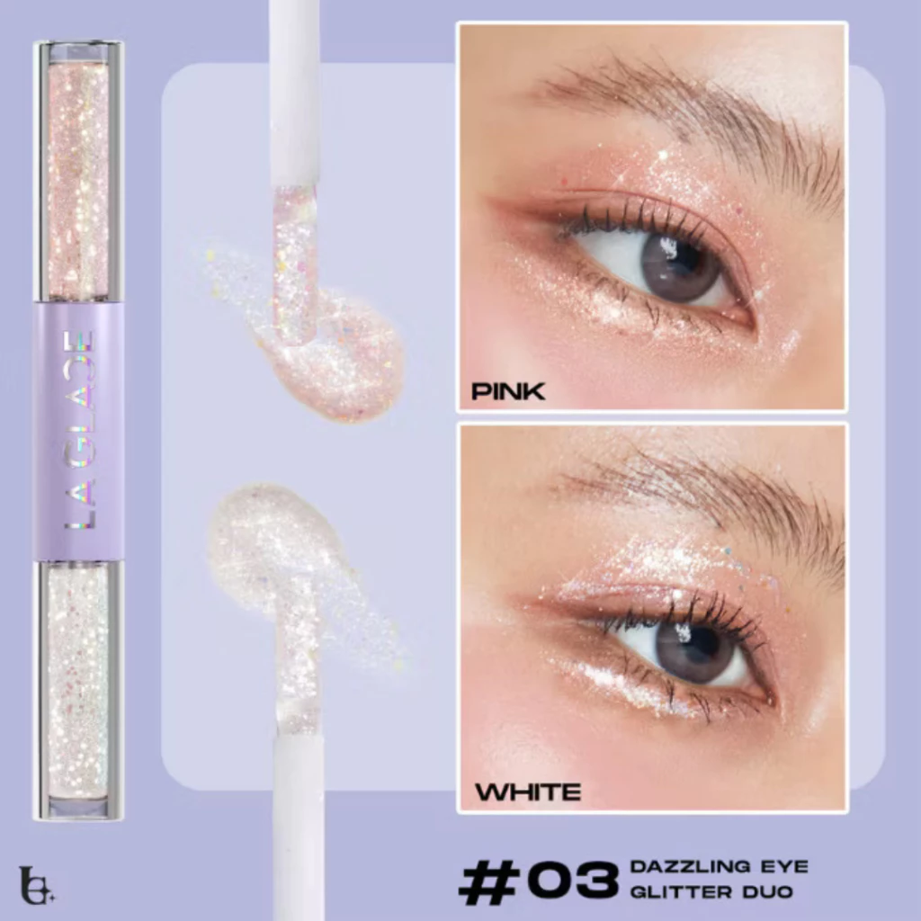 กลิตเตอร์อายแชโดว์จากแบรนด์ LA GLACE ซึ่งมีคุณสมบัติเด่นคือการมีหัวแปรงถึง 2 หัวในแท่งเดียว สามารถเลือกใช้กลิตเตอร์เนื้อชิมเมอร์หรือกลิตเตอร์เนื้อเงาได้ตามต้องการ ทั้งยังมีเนื้อสัมผัสที่ละเอียดนุ่มและติดทนนาน ช่วยเพิ่มความโดดเด่นให้กับดวงตาในทุกโอกาส ตั้งแต่การแต่งหน้าเบาๆ ไปจนถึงการแต่งหน้าในงานปาร์ตี้ อีกทั้งยังสามารถสร้างลุคที่สดใสและดูเปล่งประกายได้อย่างรวดเร็ว