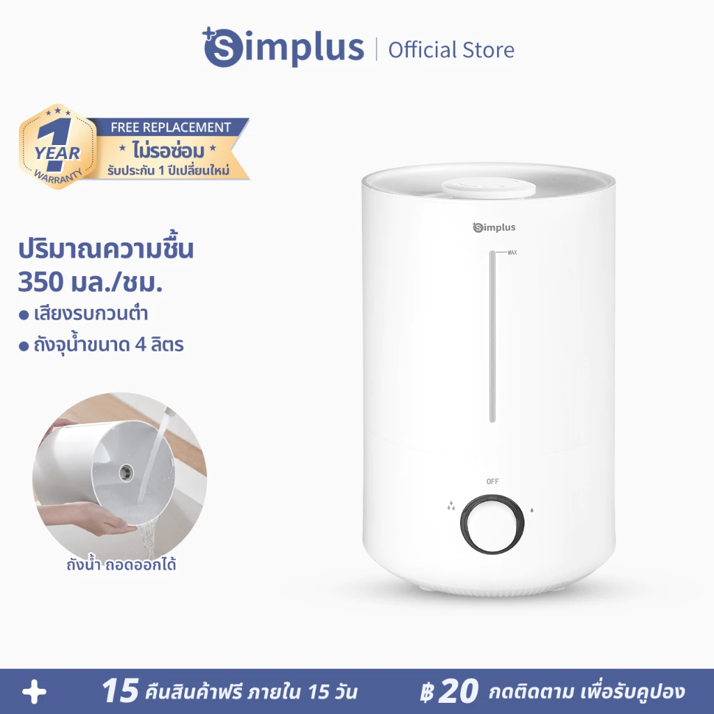 - Simplus Ultrasonic Humidifier เครื่องทำความชื้น รุ่น JASH002