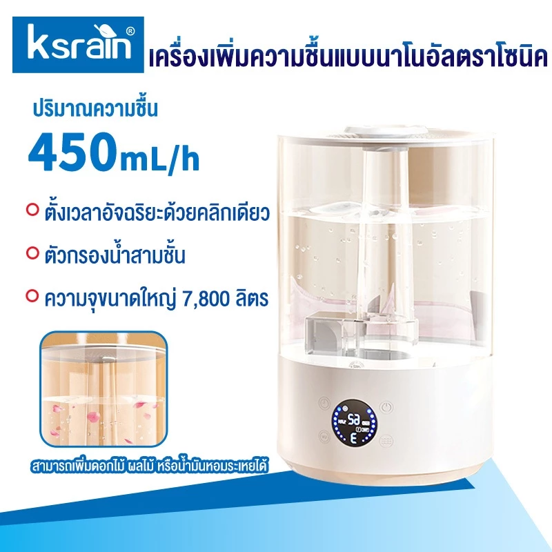 - Ksrain Air Humidifier เครื่องเพิ่มความชื้น 7800mL