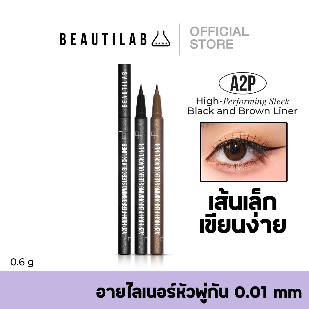 Beautilab A2P High-Performing Sleek Black Liner & Brown Liner หัวพู่กันเรียวแหลม 0.01 mm เส้นคมชัด เพิ่มความโดดเด่นให้ดวงตา เขียนง่ายแม้มือใหม่ หัวพู่กันเส้นบาง เขียนลื่น ใช้เขียนโครงเส้นไลเนอร์ได้อย่างไม่มีสะดุด