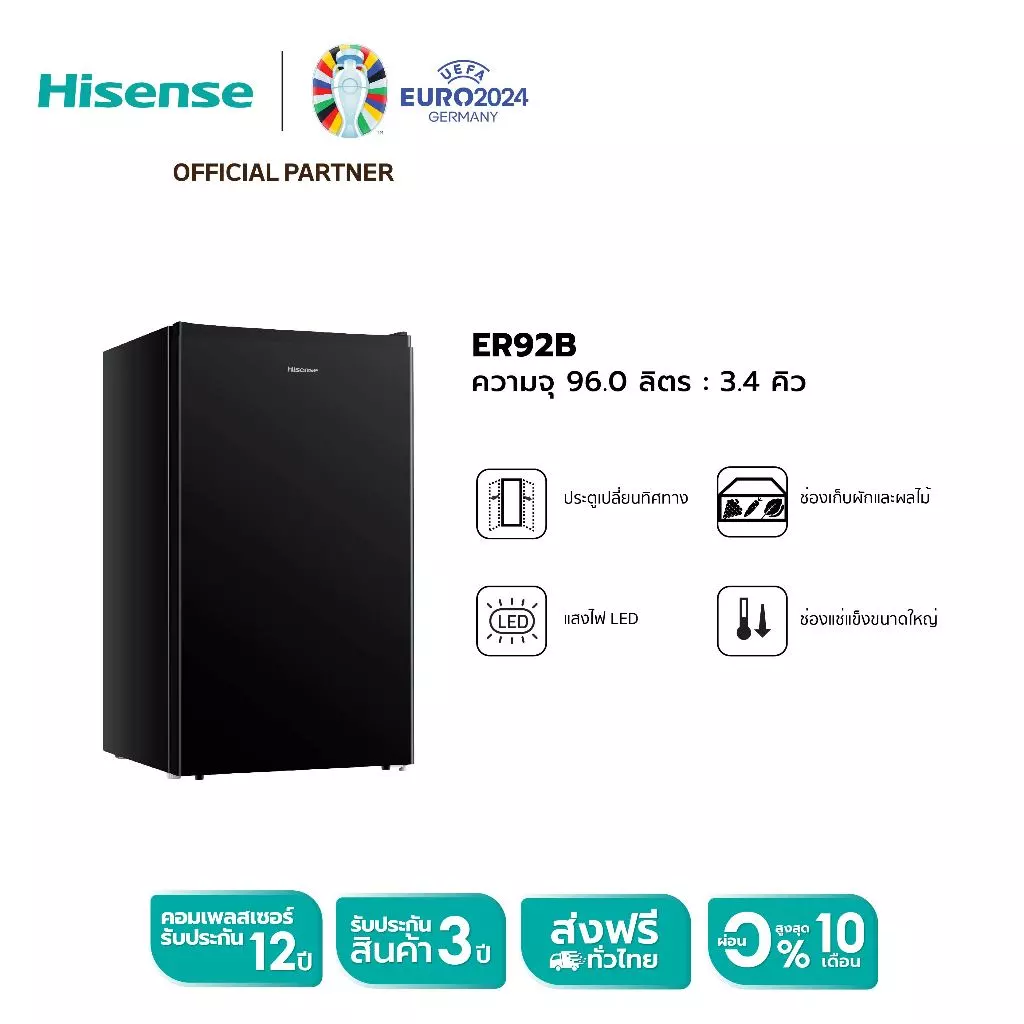 ตู้เย็น Hisense รุ่น ER92B-1 เป็นตู้เย็นแบบ 1 ประตู ขนาด 96 ลิตร (3.4 คิว) ซึ่งออกแบบมาให้มีขนาดกะทัดรัด เหมาะสำหรับการใช้งานในพื้นที่จำกัด หรือสำหรับห้องพักขนาดเล็ก มีคุณสมบัติการประหยัดพลังงาน ทำให้ใช้ไฟฟ้าน้อย และช่วยลดค่าใช้จ่ายในการใช้งานได้ดี สามารถเก็บรักษาความสดของอาหารได้อย่างมีประสิทธิภาพ ด้วยระบบทำความเย็นที่สามารถรักษาอุณหภูมิให้คงที่