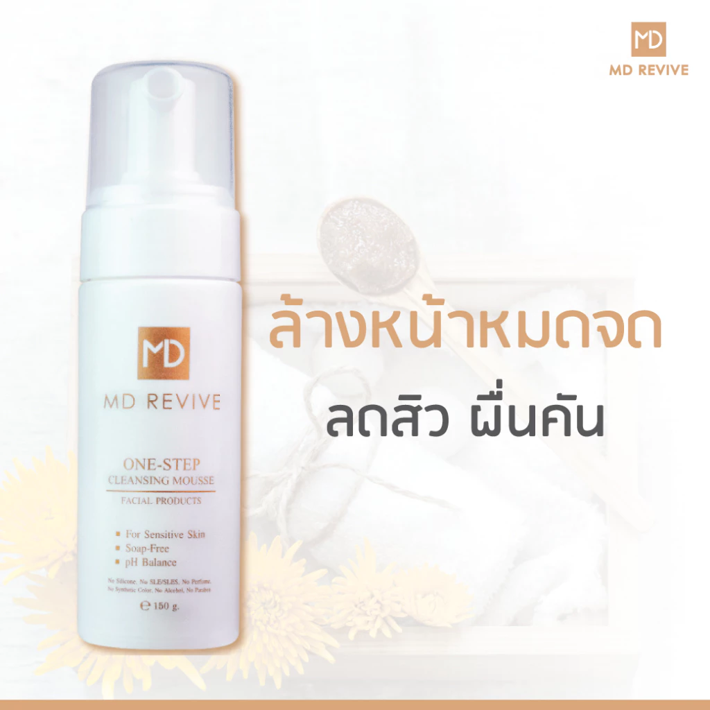 - MD Revive One-Step Cleansing Mousse โฟมล้างหน้าลดสิว คุมมัน ล้างเครื่องสำอาง สูตรอ่อนโยน