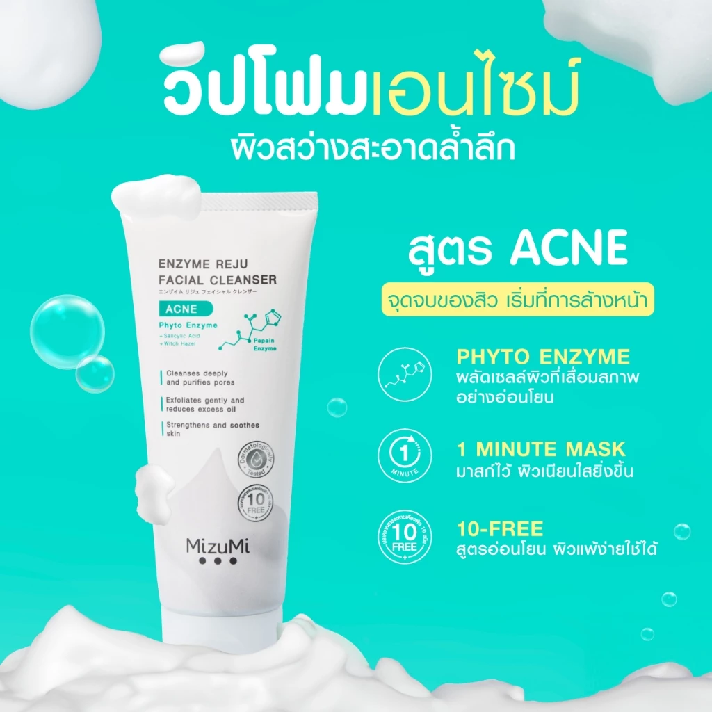 - MizuMi Enzyme Reju Facial Cleanser วิปโฟมฟองนุ่ม ทำความสะอาดผลัดเซลล์ผิวที่เสื่อมสภาพ