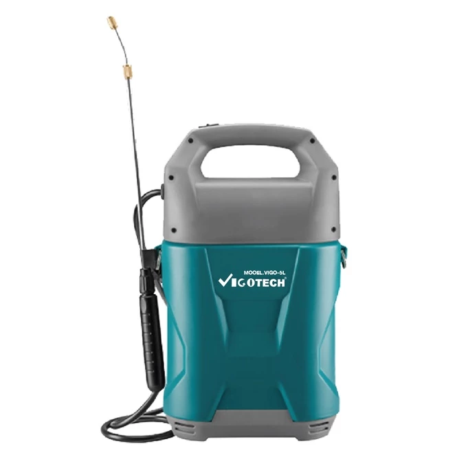 Vigotech รุ่น VIGO-5A เป็นเครื่องพ่นยาแบตเตอรี่ที่มีความจุถัง 5 ลิตร ออกแบบมาเพื่อการใช้งานในงานเกษตรและการดูแลสวนอย่างมีประสิทธิภาพ โดยเครื่องนี้ใช้แบตเตอรี่ที่ให้พลังงานในการทำงานต่อเนื่อง ทำให้ไม่ต้องกังวลเกี่ยวกับสายไฟหรือการต่อเข้ากับแหล่งจ่ายไฟ