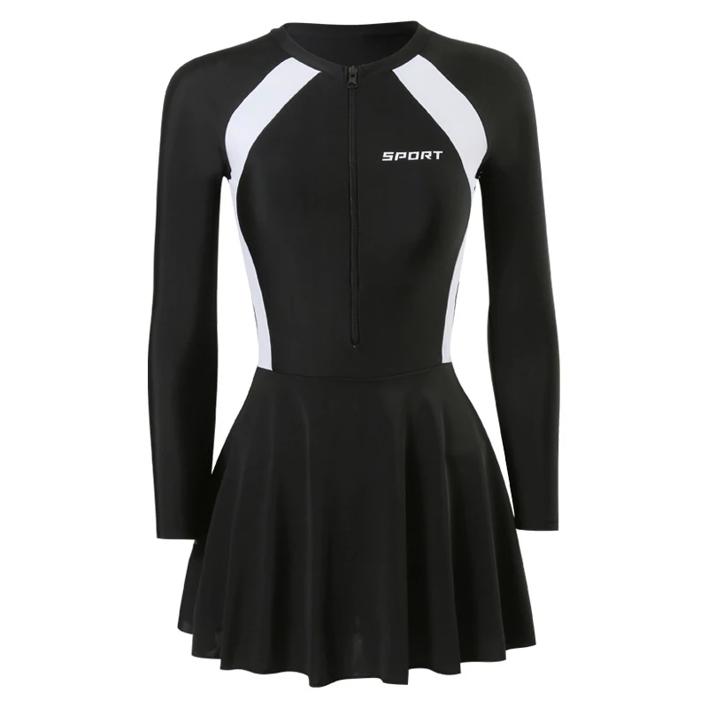 ชุดว่ายน้ำหญิงแบบหนึ่งชิ้นที่มีเสื้อแขนยาวและกางเกงขาสั้น โดยเน้นถึงความสะดวกสบายและการปกป้องผิวจากแสงแดด ออกแบบมาเพื่อให้เหมาะกับการว่ายน้ำและกิจกรรมทางน้ำอื่น ๆ รวมถึงการออกแบบที่ทันสมัยและมีสไตล์ ทำให้รู้สึกมั่นใจและสบายเมื่อใส่ นอกจากนี้ ยังมีความยืดหยุ่นสูงเพื่อให้สามารถเคลื่อนไหวได้อย่างอิสระในน้ำ ถือเป็นทางเลือกที่ดีสำหรับผู้หญิงที่ต้องการชุดว่ายน้ำที่มีทั้งฟังก์ชันและแฟชั่น