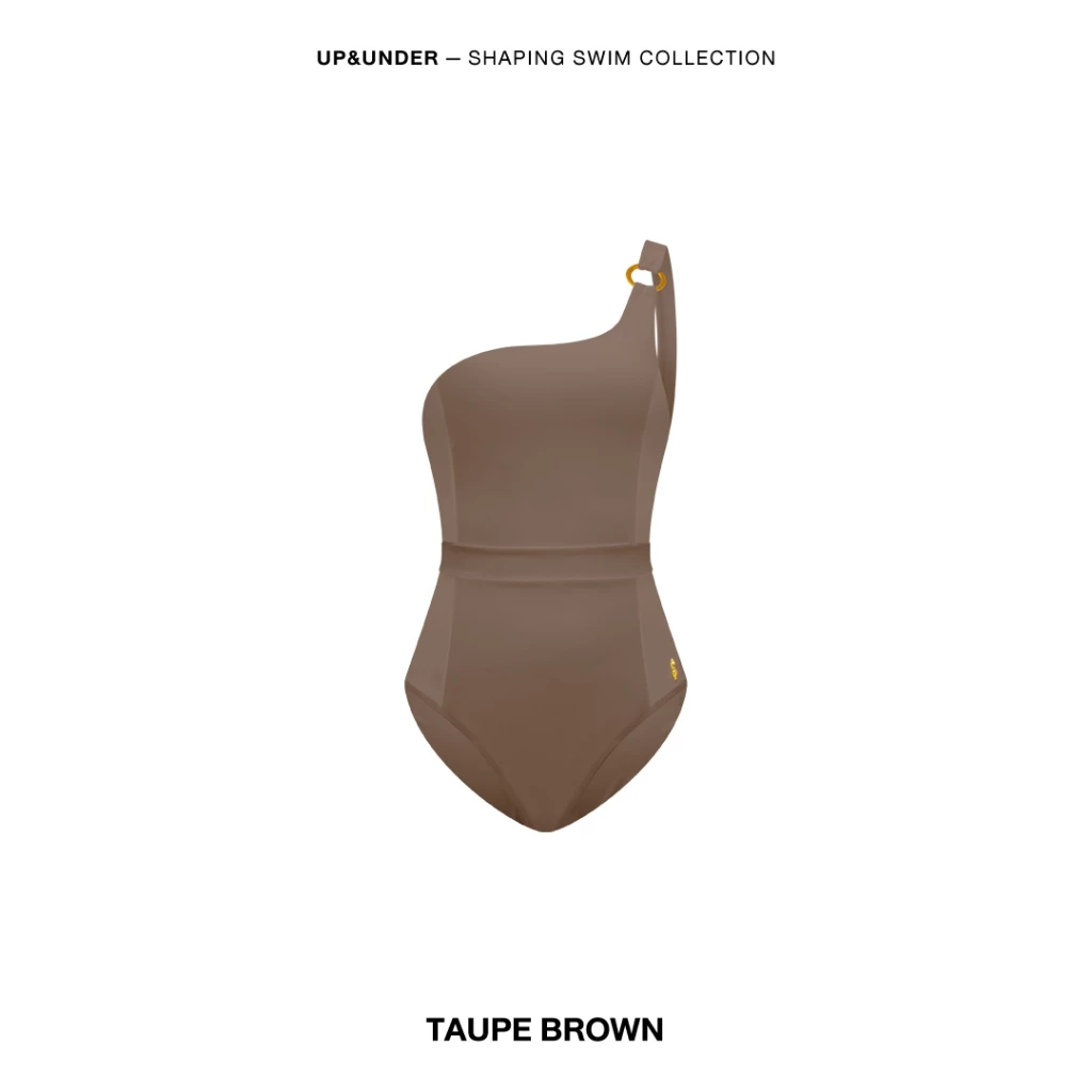 ชุดว่ายน้ำวันพีชจากแบรนด์ UP&UNDER ที่มีดีไซน์ไหล่เฉียง (One Shoulder) ซึ่งช่วยเก็บทรงให้กับรูปร่าง ชุดนี้ถูกออกแบบมาเพื่อเพิ่มความมั่นใจให้กับผู้สวมใส่ และมีฟังก์ชันที่เน้นการสร้างรูปทรงที่สวยงาม เหมาะสำหรับการว่ายน้ำหรือกิจกรรมที่ต้องการความสะดวกสบายและความเป็นแฟชั่นในเวลาเดียวกัน