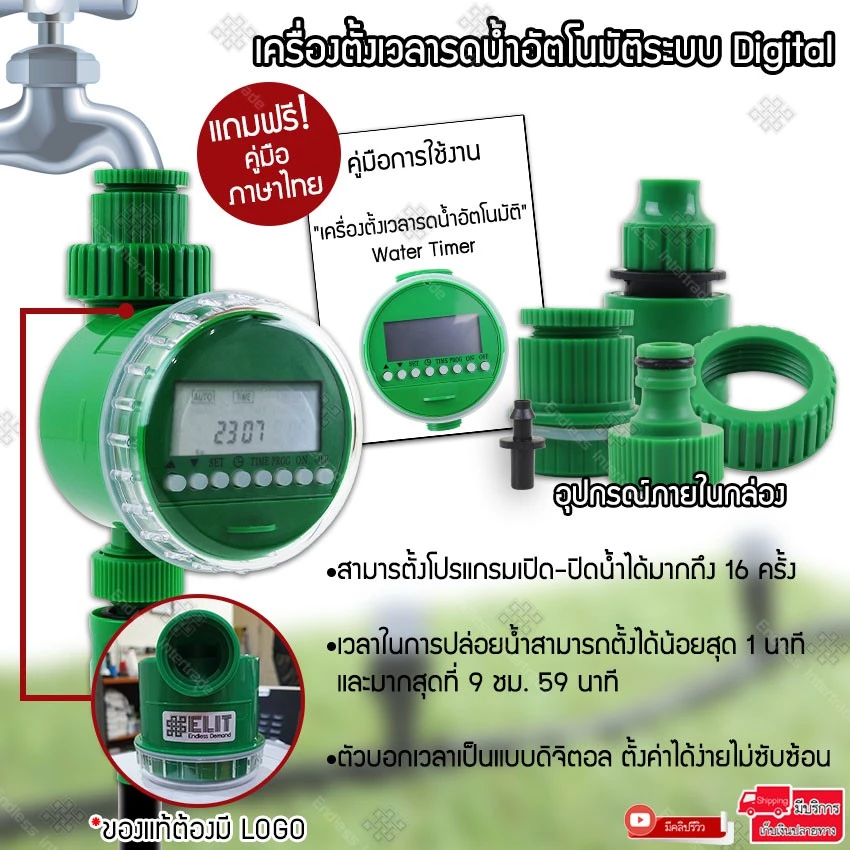 - Elit เครื่องตั้งเวลารดน้ำอัตโนมัติ เปิด-ปิสปริงเกอร์ Water Timer