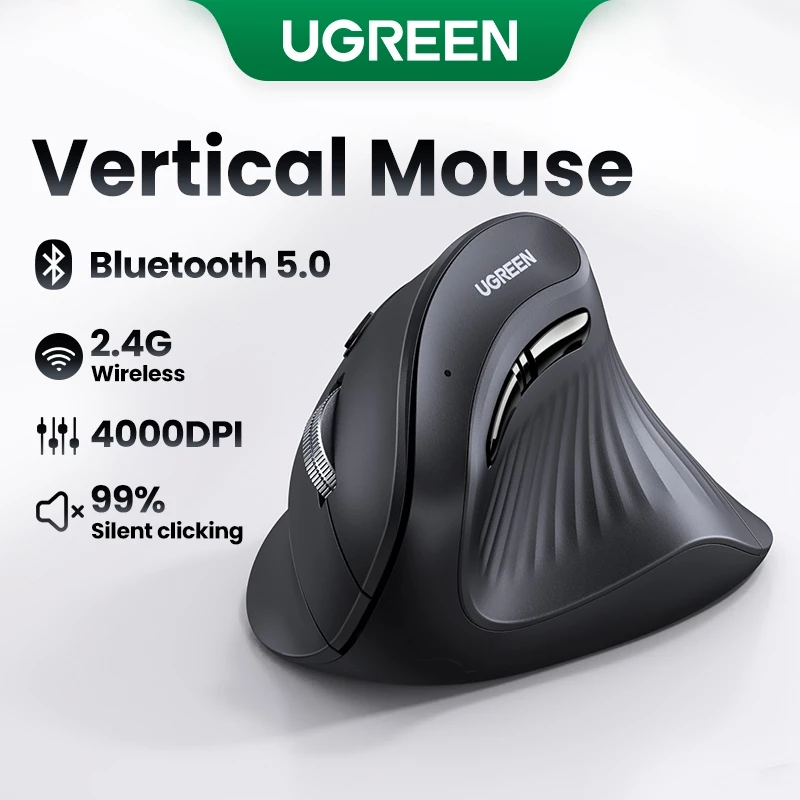 - Ugreen เมาส์ไร้สาย 4000DPI แนวตั้ง ออกแบบตามสรีรศาสตร์