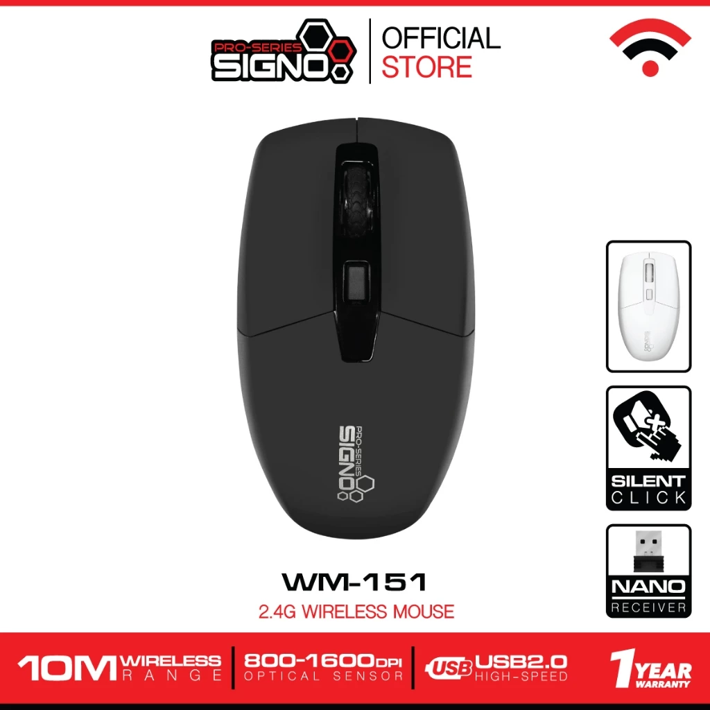SIGNO 2.4G Wireless Optical Mouse รุ่น WM-151 เป็นเมาส์ไร้สายที่ออกแบบมาเพื่อความสะดวกสบายในการใช้งาน SIGNO WM-151 จึงเป็นตัวเลือกที่ดีสำหรับผู้ที่มองหาเมาส์ไร้สายที่มีคุณภาพและความสะดวกสบายในการใช้งาน